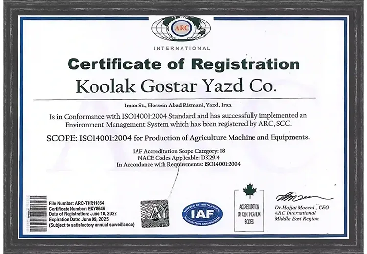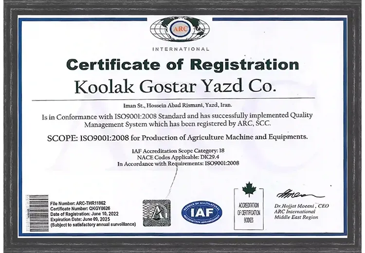 در مهر ماه 1402 شرکت کولاک گستر یزد موفق به دریافت گواهینامه استاندارد ملی و برچسب انرژی گرید سی برای هیتر ایستاده استوانهای (ECO250) با دیگ چند لایه و جریان ناهمسو از سازمان استاندارد ملی ایران گردید.