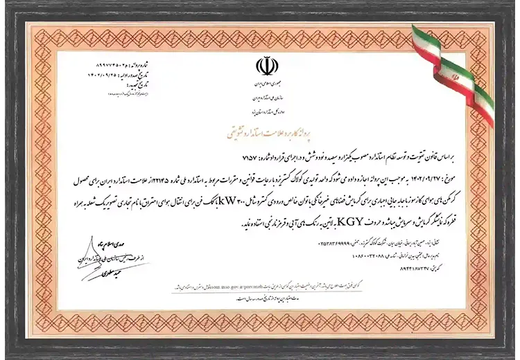- دارای تاییدیه استاندارد ایران در محصولات سرمایشی، گرمایشی و تهویه