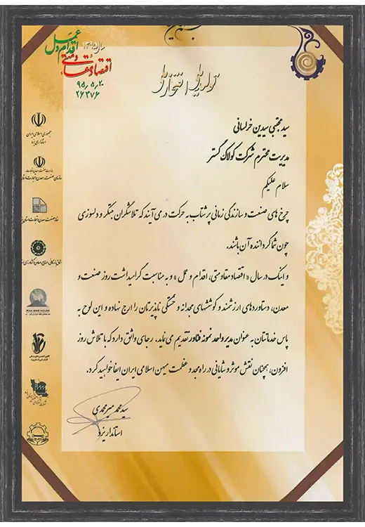 - کسب عنوان تولید کننده برتر تجهیزات و لوازم مرغداری و سیستم های گرمایشی و سرمایشی در استان یزد در سال ۱۳۹۳