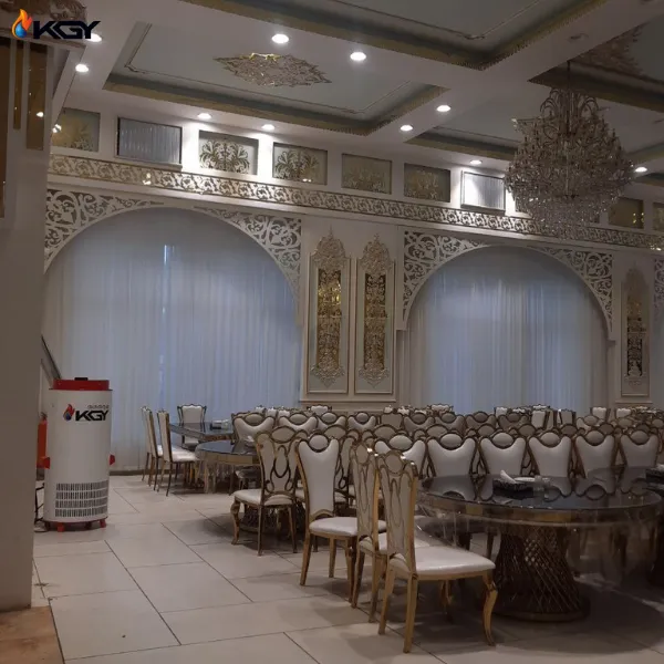 برای تأمین گرمایش بهینه در تالار باغ و آیینه کاشان، از بخاری فندار ECO60 شرکت کولاک گستر یزد استفاده شده است. این بخاری با ظرفیت حرارتی 60,000 کیلوکالری بر ساعت و راندمان حرارتی بالا، عملکرد فوقالعادهای در تأمین گرمای محیط با حداقل مصرف سوخت دارد. طراحی مدرن و زیبا، همراه با پوشش رنگ الکترواستاتیک کورهای، این دستگاه را به گزینهای جذاب برای فضاهای شیک تبدیل کرده است. همچنین برای تأمین سرمایش این تالار از کولر سانتریفیوژ کولاک گستر یزد استفاده شده است. این کولر با قدرت پرتاب هوا و توان سرمایشی بالا، عملکرد بسیار مؤثری در خنک کردن فضاهای بزرگ دارد.
