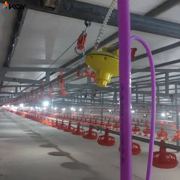 در مرغداری پرورش مرغ گوشتی از سیستمهای دانخوری اتوماتیک و سیستم آبخوری نیپل کولاک گستر یزد استفاده شد. سیستم دانخوری کولاک گستر به لوله اوگر گالوانیزه به ضخامت 1.5 میلیمتر مجهز است و با استفاده از سنسور قطعکن خودکار در انتهای خط، از هدررفت دان و آلودگیهای محیطی جلوگیری میکند. این سیستم به هاپر فلزی مستحکم و فنر ضد سایش با آلیاژ ساخت آفریقای جنوبی مجهز است.