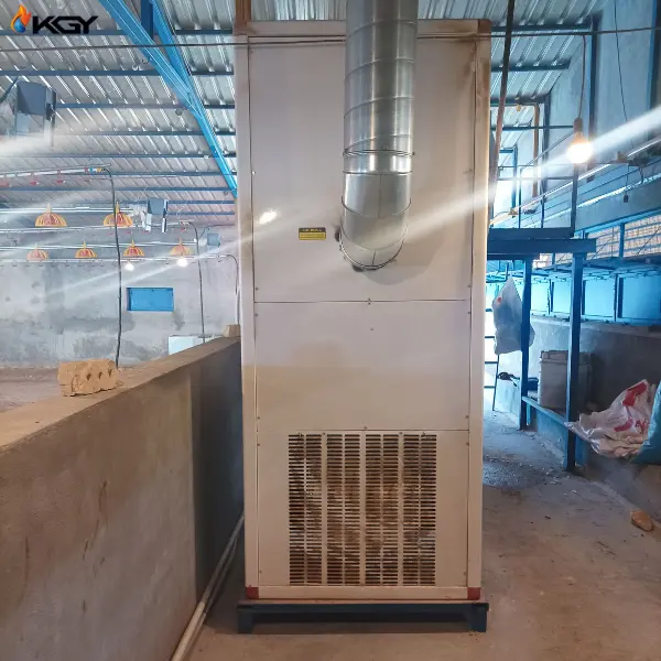 در این مرغداری جهت تامین گرمایش مناسب، از هیترهای پیشرفته سری WA کولاک گستر استفاده گردید. این هیترها به ایمنی و ماندگاری بالا معروف هستند و 96 درصد راندمان حرارتی دارند. دیگ و مبدل این هیترها تماما از استیل آتشخوار ساخته شده و اتصالات آن به صورت پرسی است که امکان تعویض در کمترین زمان ممکن را فراهم ساخته است. این هیترها امکان نصب در داخل و بیرون از سالن مرغداری را دارند.