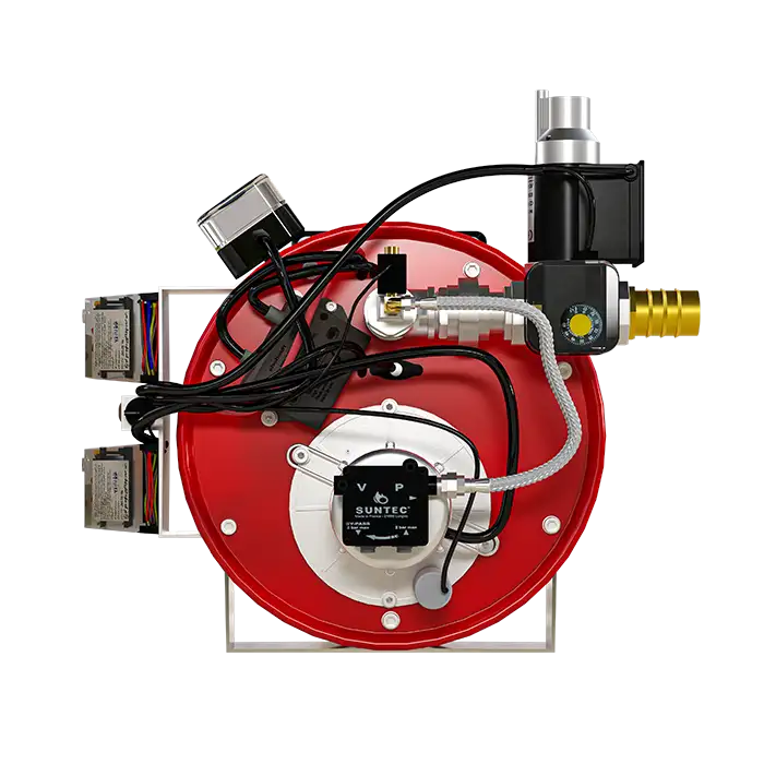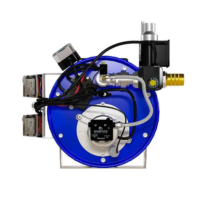 فرآیند راهاندازی مشعل دوگانه سوز با دریافت سیگنال از ترموستات آغاز میشود. پس از فعالسازی فن هوادهی و گذشت چند ثانیه، ترانس جرقهزن شروع به تولید جرقه میکند. همزمان، شیر برقی سوخت (گاز یا گازوئیل) باز شده و سوخت به محفظه احتراق هدایت میشود. در این مرحله، با ترکیب بهینه سوخت و هوا در حضور جرقه، شعلهای پایدار و کارآمد ایجاد میشود که عملکرد مؤثر مشعل دوگانه سوز را تضمین میکند.