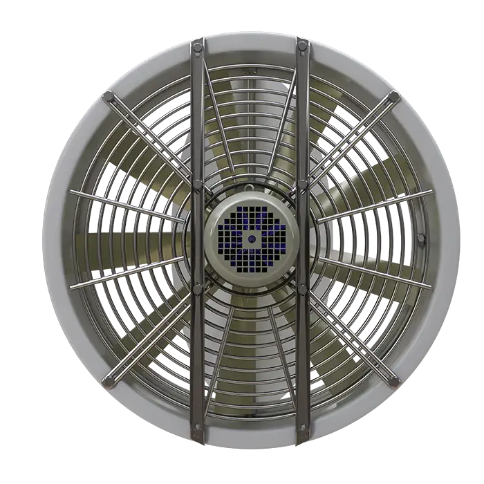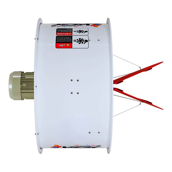 استفاده از تیغههای هدایتکننده در این هواکش مرغداری باعث افزایش سرعت جریان هوای آن شده است.
